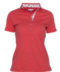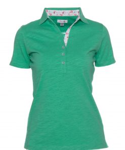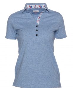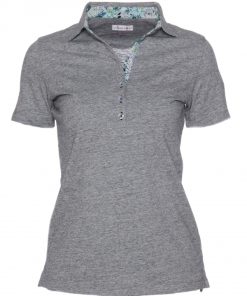 Coton Doux Grey Women’s Slim Fit Cotton-blend Polo Shirt With Blue Flowers Inner Lining Print