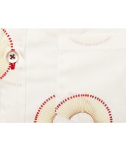 Is your son already a young little dandy? Make him happy with this shirt and its prints inspired by stained-glass window patterns where the combination of yellow and blue-grey has an effect of great elegance. Its close-fitting cut, its little collar and two-button cuffs are extremely trendy.