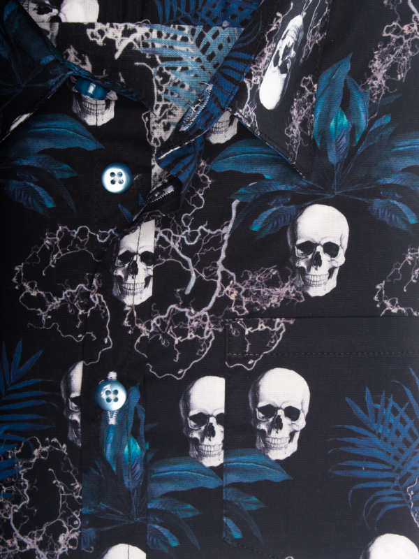 This design will definitely be a favorite for all the little rock fans out there! This skull print, in combination with the dark background, will look great with black or charcoal-grey jeans. Its soft collar and loose fit make it great for playtime, whereas the double-button cuffs and the right-hand side pocket add a stylish touch!
