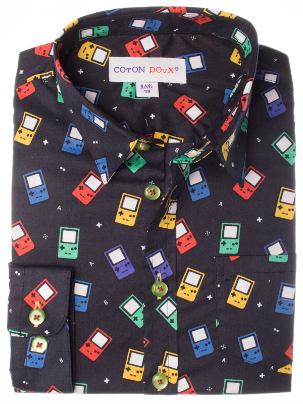 Match this video games shirt with a black bottom and a pair of sneakers to show off the contrast. Your little blondies, redheads and brunettes will have no problems playing with a style and will love its soft collar, double-button cuffs and loose fit.