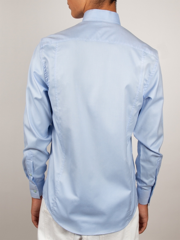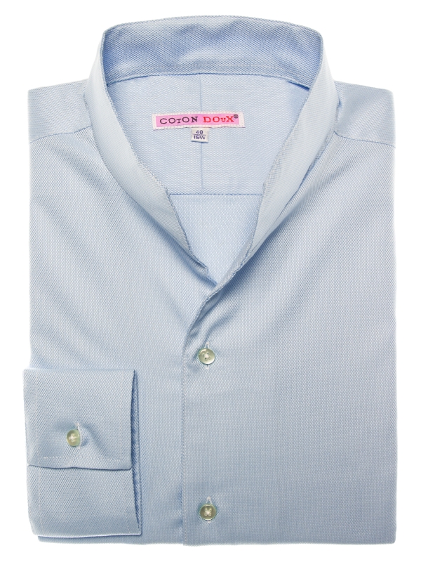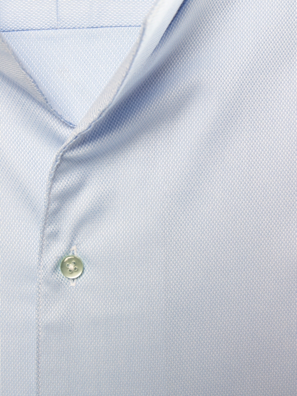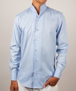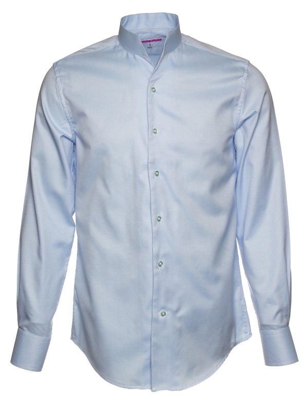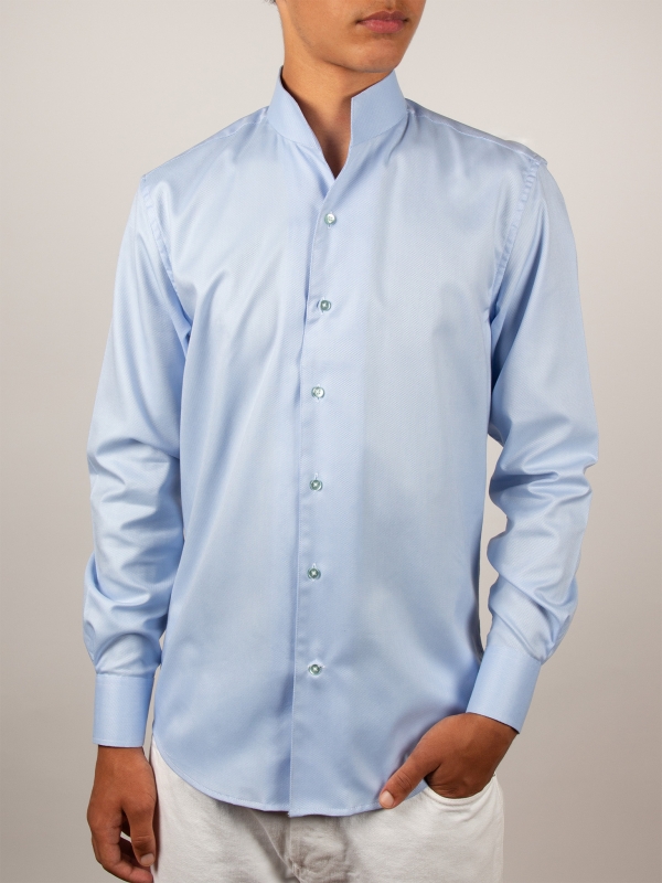 This blue jacquard shirt offers a refined take on classic style. Its subtle textured pattern adds depth, while the stand-up collar brings a modern edge to the silhouette. Clean simple cuffs complete its streamlined look. Blending comfort with character, it’s a standout piece for a smart, casual-chic wardrobe.
