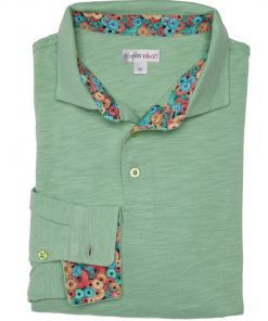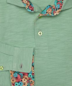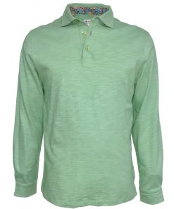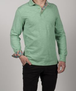 With this emerald green long sleeves polo shirt in pure cotton with machinery inner lining print, there’s no danger of losing inspiration. Just keep putting oil in those cogs, which are found in the cotton piqué collar and two-button placket to keep you on track. The slim fit and double button cuffs will ensure an undisturbed day. You can accessorise with a watch to add to the detail. This is how you can be stylish and serious at the same time.