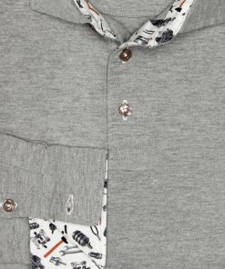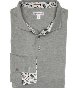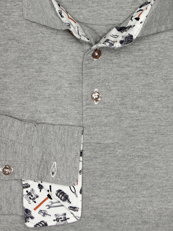 The complexity of mechanics will no longer hold any secrets for you. The tools inner lining print will be placed intimately inside the cotton piqué collar of this pure cotton long sleeve polo. The double button cuffs will be here to give you ease in your manual activities. The grey colour is said to be synonymous with softness, and will be present throughout your fitted cut. To accentuate the delicacy of the two-button placket, navy blue suit trousers will be preferred.