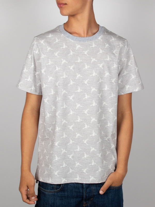 Coton Doux Men’s Heather Grey T-shirt With Hummingbird Print