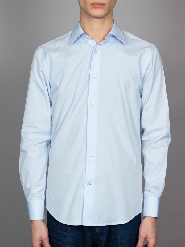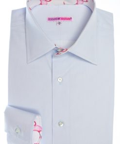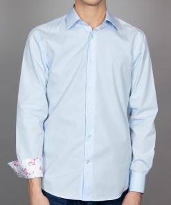 This light blue poplin shirt offers a refreshing look with its Milanese collar, single cuffs, and regular fit. But it’s the hidden flamingo print on the inner lining that adds an unexpected splash of personality. The perfect balance of polished and playful, it’s a shirt that says you take style seriously, but you’re not afraid to let your fun side show when the buttons come undone.