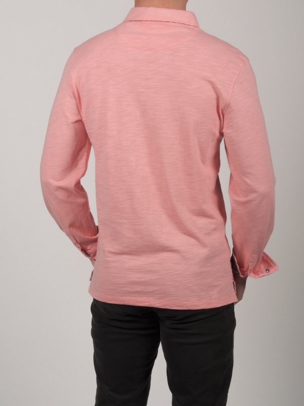 Have you been a fan of sweets since you were a child? The candy pink colour of this long sleeve polo shirt with double button cuffs will speak to you. Those with a keen eye will spot the skull inner lining print of in your cotton piqué collar. The more culturally savvy will even see what they match. The chic look of the two-button placket won’t escape their notice either. Straight jeans will fluidify the fit of the pure cotton slim fit!