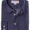 Extend your summer by wearing this plain white polo shirt with azulejos inner lining print! Comfortable to wear thanks to its cotton jersey composition and its regular cut, you will also appreciate the elegance of its two-button placket. Wear it with a navy chino trousers for a Mediterranean style.