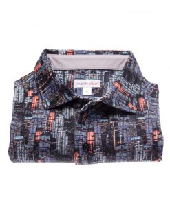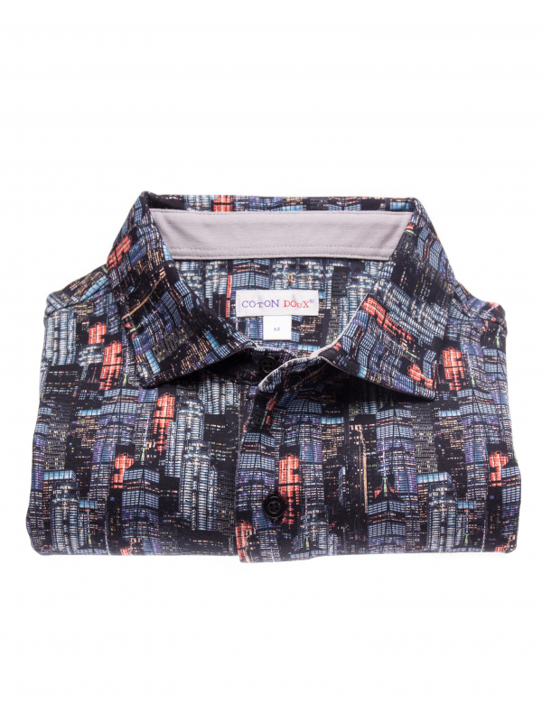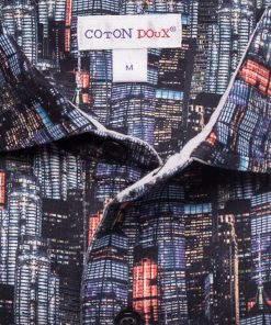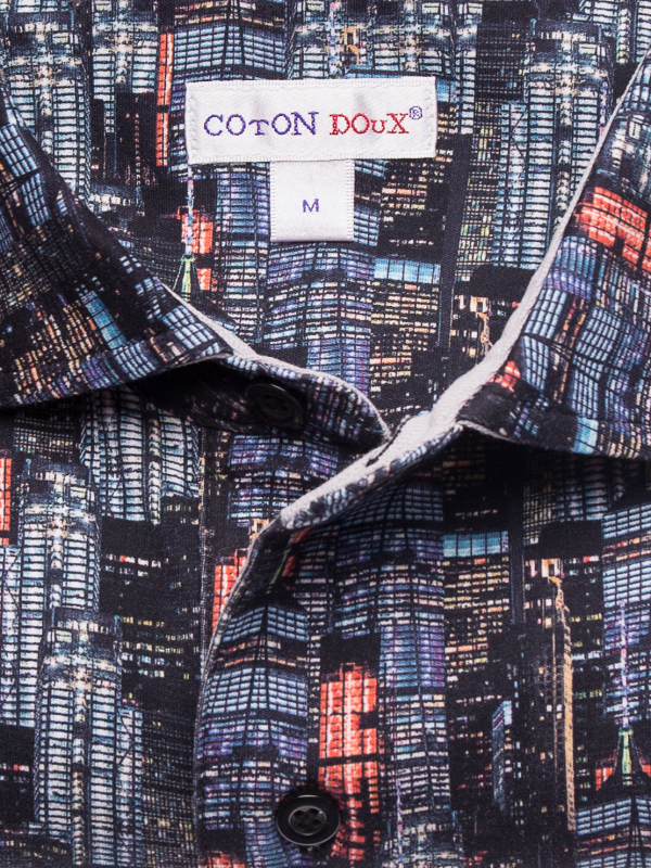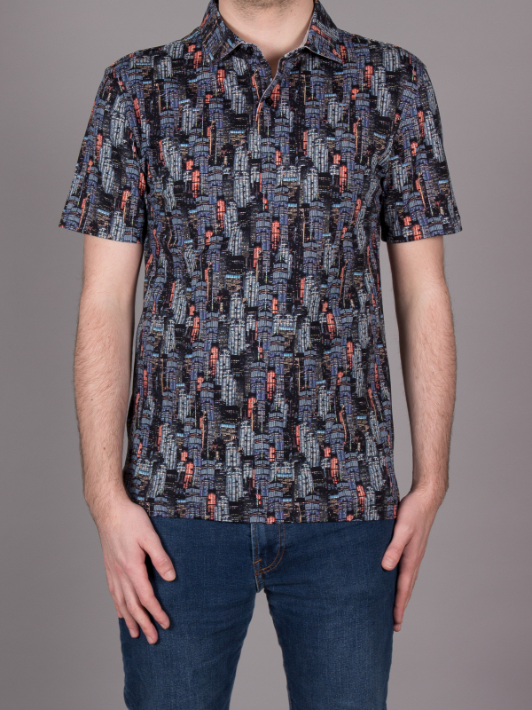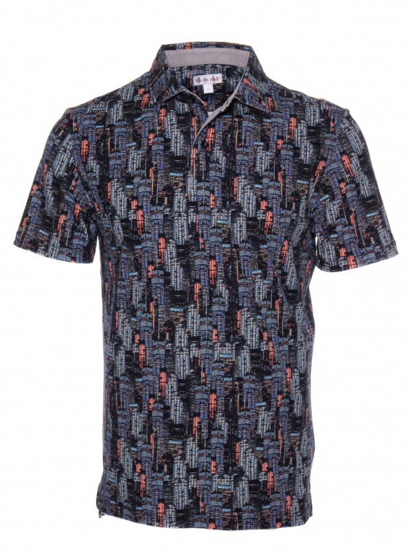 Are you a convinced city man? Affirm it with this polo shirt with the buildings print. Thanks to this night shot, you will be able to wear these colors easily with all your jeans: black, grey, raw, light. Its composition in mercerized cotton jersey, its regular fit and its double button will give you softness and comfort to complete your day. Plan to wear it on the evening? Slip it under a light grey cardigan and bring out its cotton piqué collar in the same tone.
