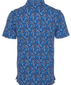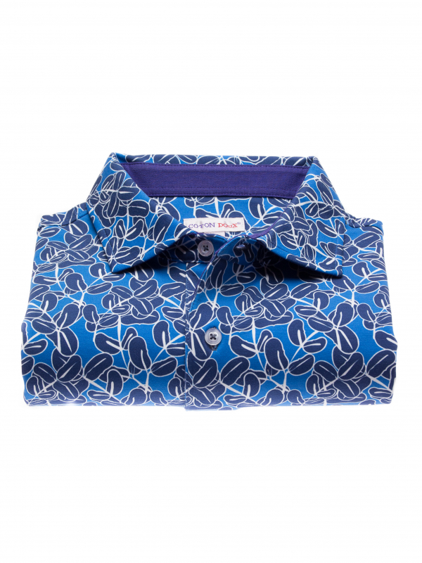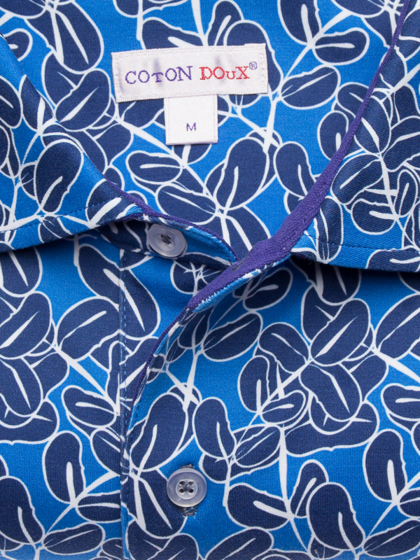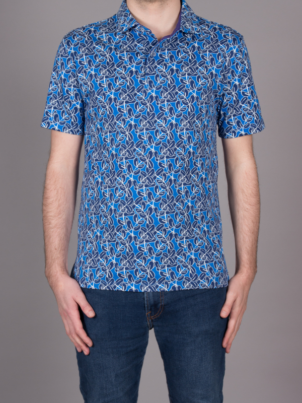 Looking for a blue polo shirt but tired of plain colors? This model with its regular fit and leaf print should be a perfect compromise! Its two-button placket will give you the choice between casualness and elegance. Its cotton piqué collar and its shades will be easy to wear with a navy chino. In cotton jersey for a lightweight effect!