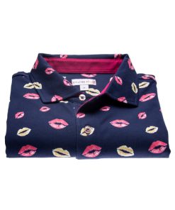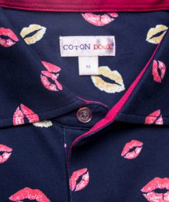 A charmer to the core? Test your seductive power with this regular fit polo with lip print. With beige chino pants and a pair of white sneakers, it will become your greatest asset for a casual and elegant look, thanks to its two-button placket, slim cut and piqué collar. Its composition in mercerized cotton jersey will seduce you.