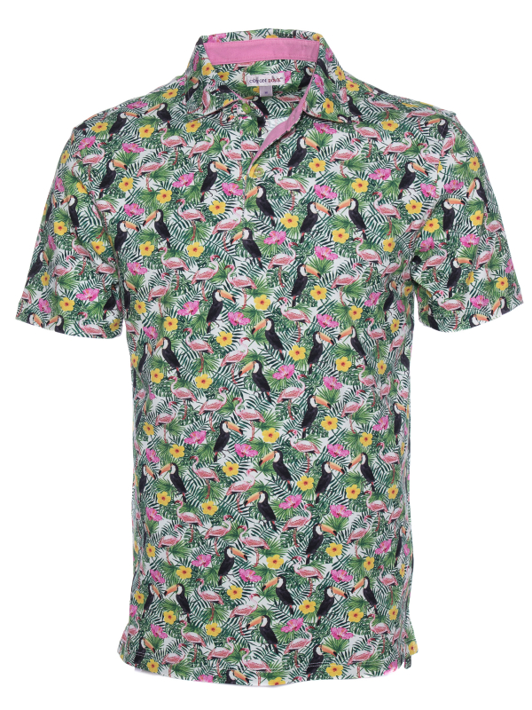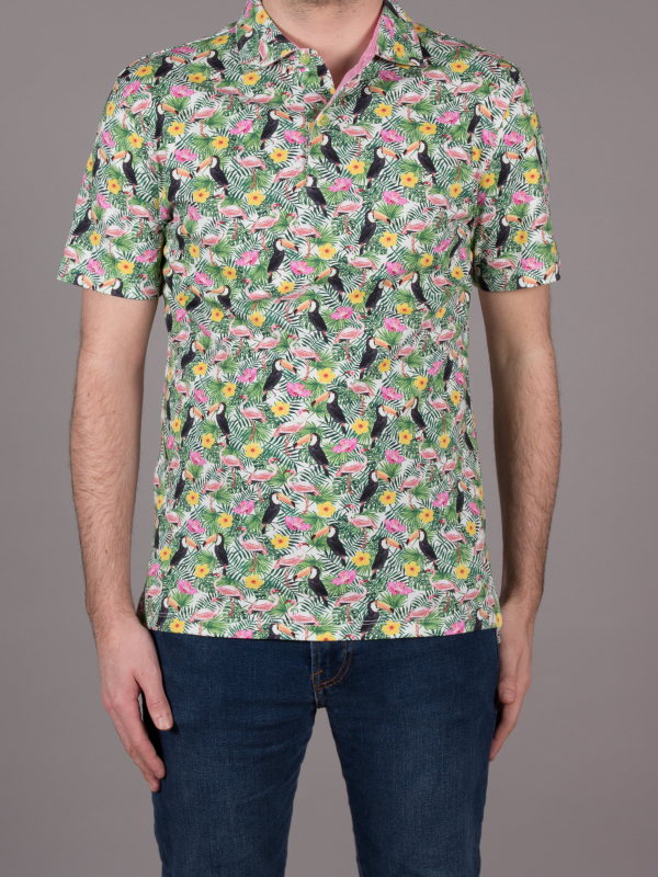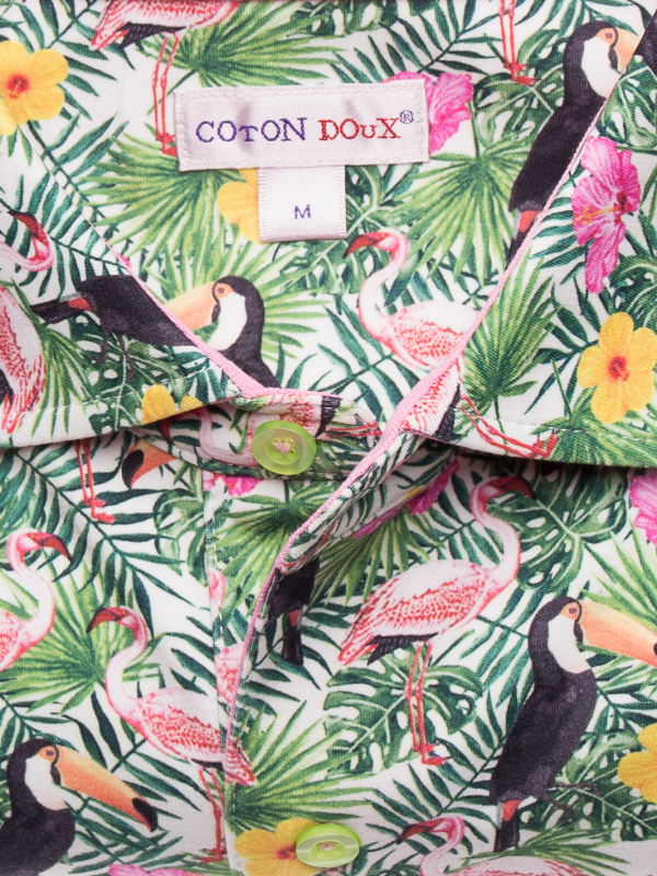 Are you feeling the smell of the summer? It is because you just found this polo! Flamingos and toucans are knowing pattern in Coton Doux and in this collection they came together one more time in a new version with the sunny touch of the poppies flowers. The regular fit, double button and the light of the cotton of jersey make this piece really confortable to wear. If you were looking for you favorite polo for this summer, this is the one. Match with a pair of jeans, white sneakers and enjoy the hot days!