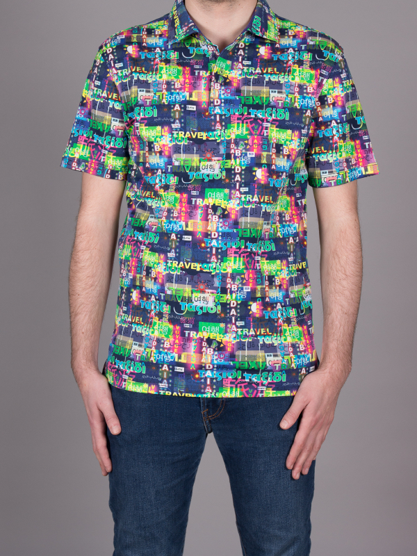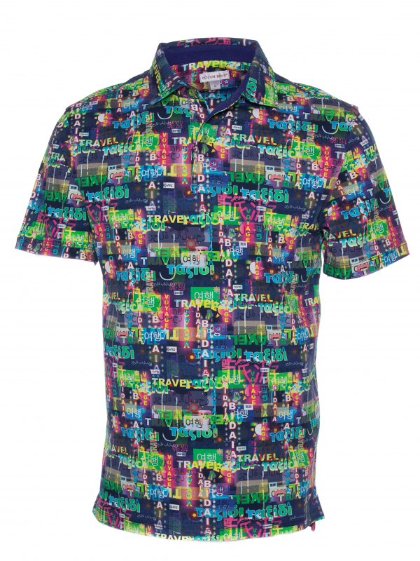 Coton Doux Men’s Regular Fit Polo With Travel Inspired Print