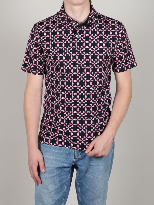 This watermelon print polo is so refreshing you’ll almost want to bite into it! You’ll also be tempted by the softness of its cotton piqué collar and its trendy regular fit. Its mercerised cotton jersey fabric will keep you cool on hot summer days and its two-button placket will open easily for a free neck. To enhance this fuchsia pink/black contrast, opt for black pants too.