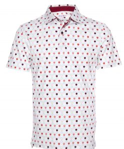 Epicurean at heart, enjoy this revamped wine glass print! With its geometric effect, it will be discretely worn over a burgundy chino, as a reference. Its cotton jersey composition and regular cut will also add to its charm, a pleasure to wear. Mark the contrast by highlighting its double button and its orange cotton piqué collar. This is a vintage outfit!