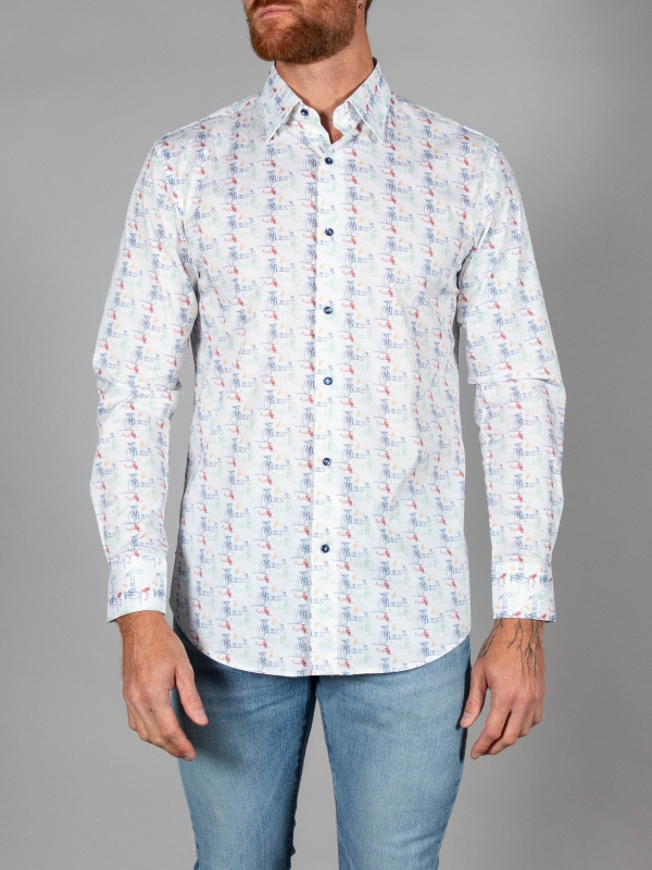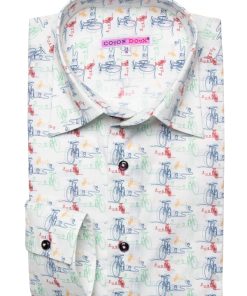 Pedal into style with our Bike Print shirt. Featuring charming bicycle motifs, this shirt adds a playful and adventurous touch to any outfit. Designed with a classic collar and a regular fit for maximum comfort and style.Team it with navy blue chino shorts and white canvas sneakers for a cool and laid-back look.This shirt promises to ride along with you in effortless style!