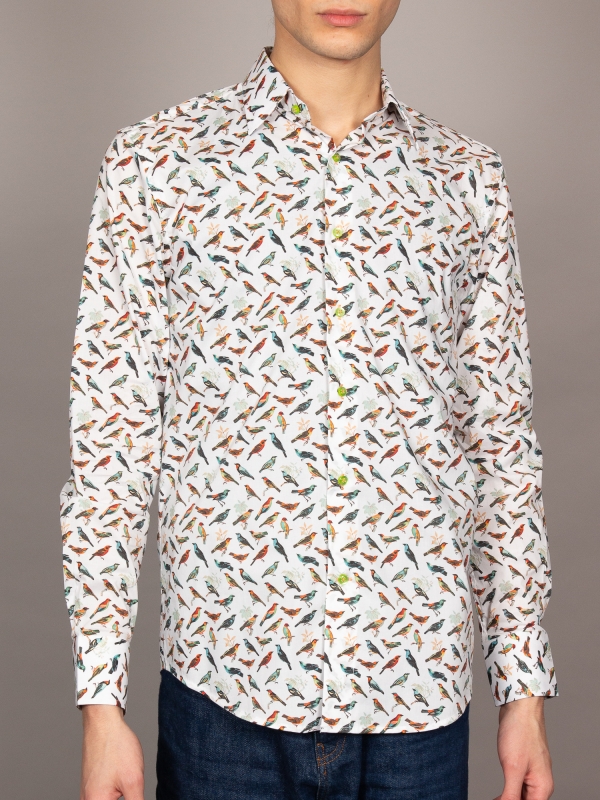 Coton Doux Men’s Regular Fit Shirt With Bird Print