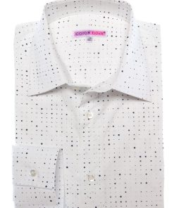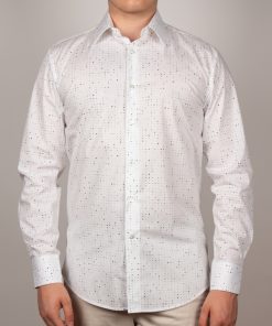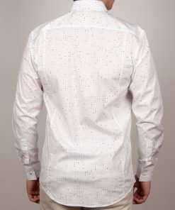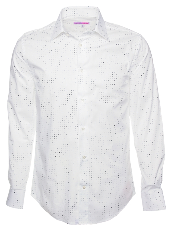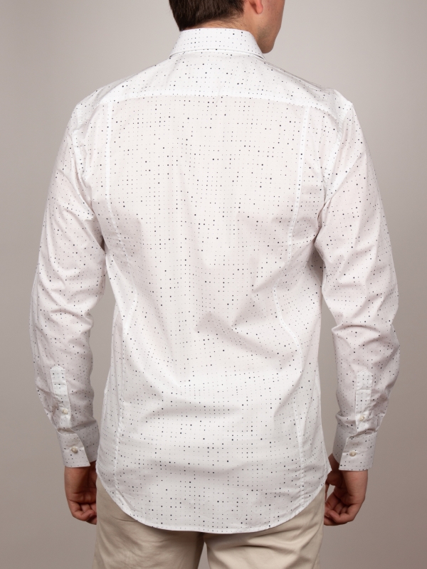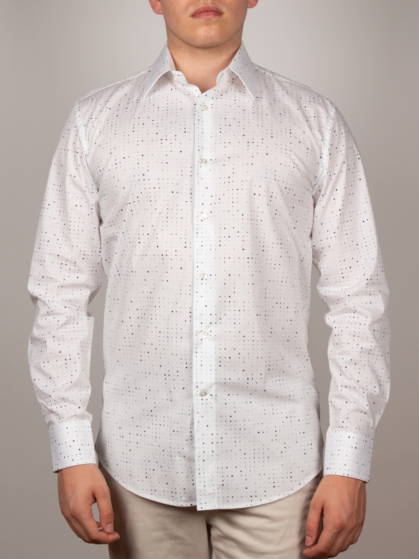 Embrace minimalist modernity with this graphic-print shirt. Its regular cut, structured Milanese collar, and simple cuffs create a sharp, contemporary silhouette. Bold black patches, like ink splatters on a white canvas, inject artistic energy into the design. Pair it with solid-colored bottoms for a sleek and standout look.