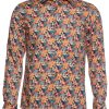 Embrace an exotic getaway with this jungle-print shirt, where bold patterns blend seamlessly with refined sophistication. Its regular cut offers a structured, modern silhouette, enhanced by a sleek Milanese collar and minimalist cuffs. Rich in intricate botanical details, the print achieves a harmonious balance of vibrancy and elegance. Perfect for those who want to showcase a daring style with grace and contemporary flair.