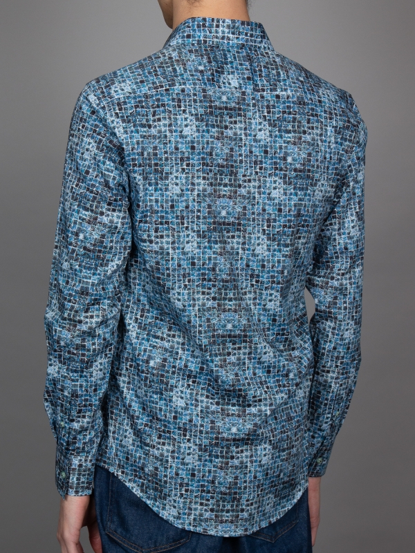 Turn heads in this striking blue mosaic print shirt. Featuring a sharp Milanese collar, single cuffs, and a regular fit, it balances bold geometric design with laid-back ease. Dress it up with chinos or keep it casual with jeans this versatile piece is your go-to for effortless style. Elevate your everyday look with a splash of color and confidence.