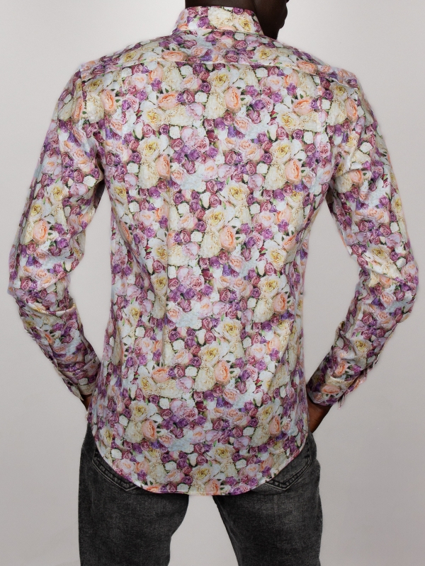 Step into elegance with our Roses print shirt, adorned with delicate rose motifs that embody romance and grace. Designed with a classic collar and tailored in a regular fit for comfort and versatility, this shirt effortlessly transitions from day to night. Combine it with navy blue slim-fit trousers and suede loafers for a refined and sophisticated ensemble that complements the shirt’s romantic motif and timeless appeal.
