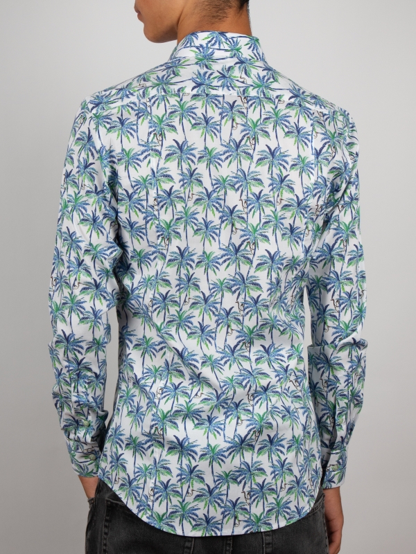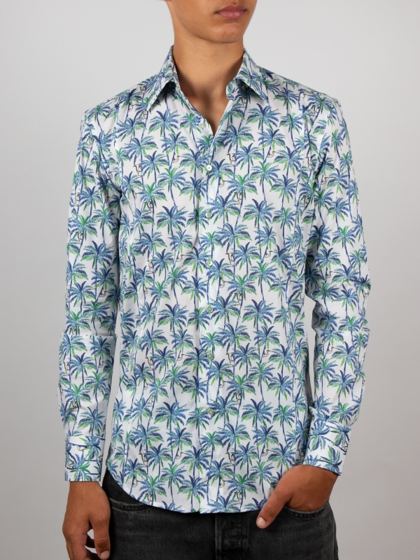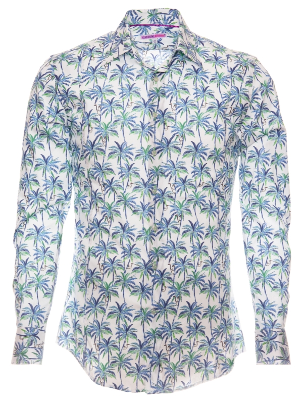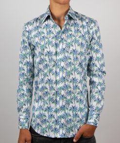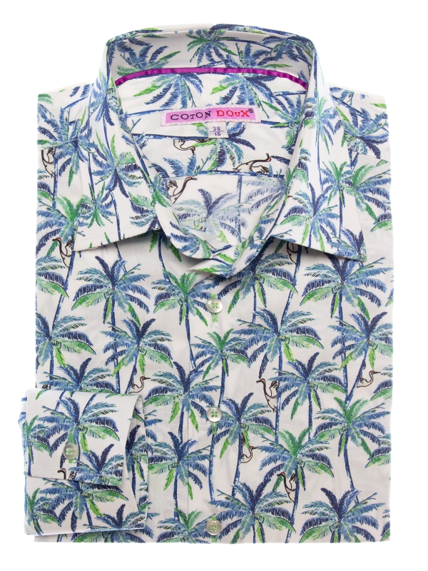 Coton Doux Men’s Slim Fit Shirt With Bicolor Palm Tree