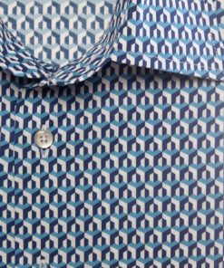 This slim fit shirt reinvents the classics with a striking geometric print in contrasting tones. The Milanese collar adds a touch of elegance, while the simple cuffs guarantee a clean finish. Perfect for lovers of sophisticated patterns, it shapes a bold silhouette with an urban and refined vibe.