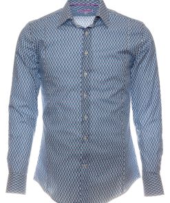 This slim fit shirt reinvents the classics with a striking geometric print in contrasting tones. The Milanese collar adds a touch of elegance, while the simple cuffs guarantee a clean finish. Perfect for lovers of sophisticated patterns, it shapes a bold silhouette with an urban and refined vibe.
