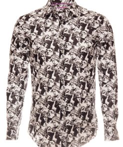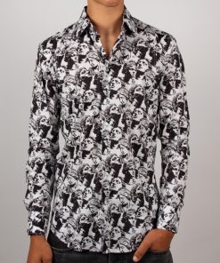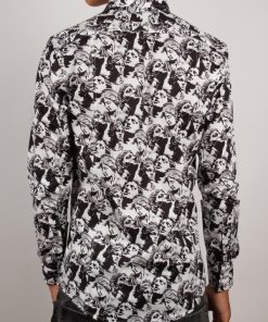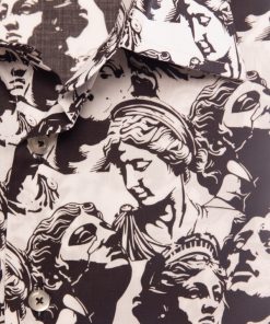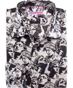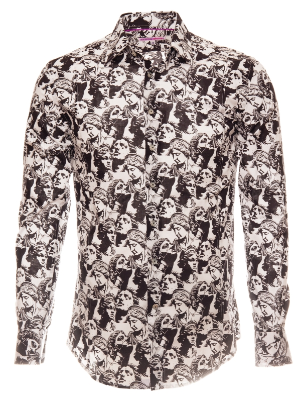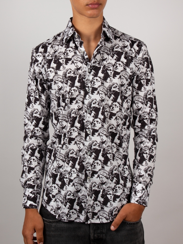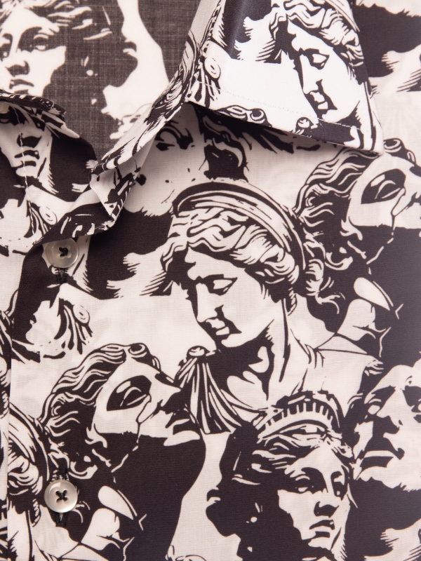 Elevate your style to an art form with this slim fit shirt featuring a statue print. The cut gently enhances the silhouette, while the Milanese collar and simple cuffs provide a polished finish. The pattern merges classical lines with a modern graphic spirit, creating a look that is both timeless and boldly contemporary. Perfect for a sophisticated and confident appearance.