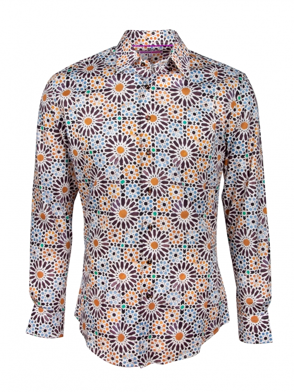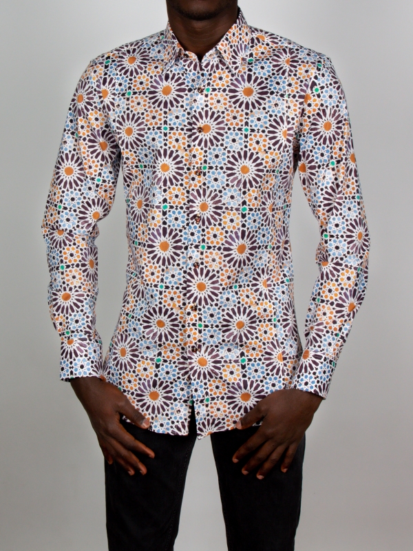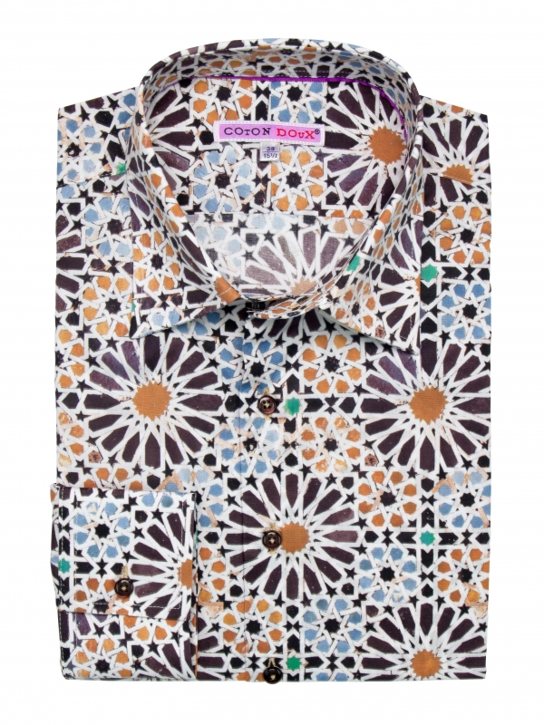 Coton Doux Men’s Slim Fit Shirt With Traditional Zellige Print