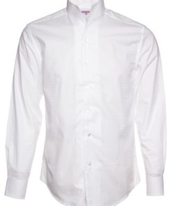 With its subtle raised jacquard patterns, this white shirt combines simplicity and refinement. Its stand-up collar, crafted in one piece for a smooth and clean line, along with its regular cut, make it an elegant and modern piece. Perfect for professional outfits as well as formal occasions.