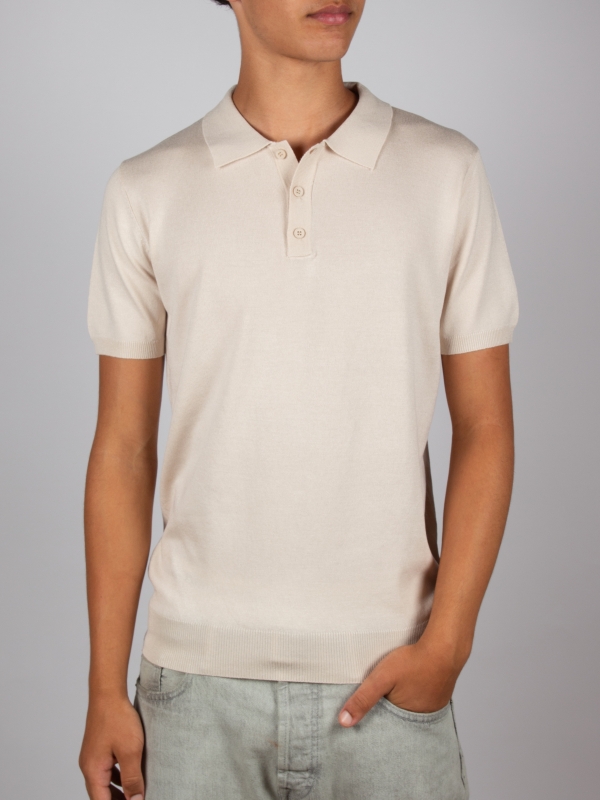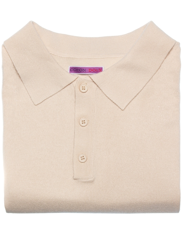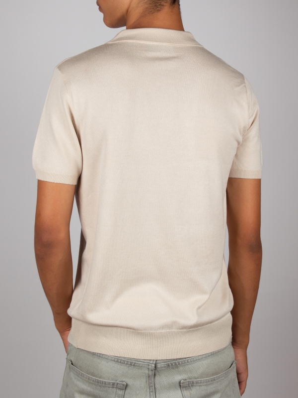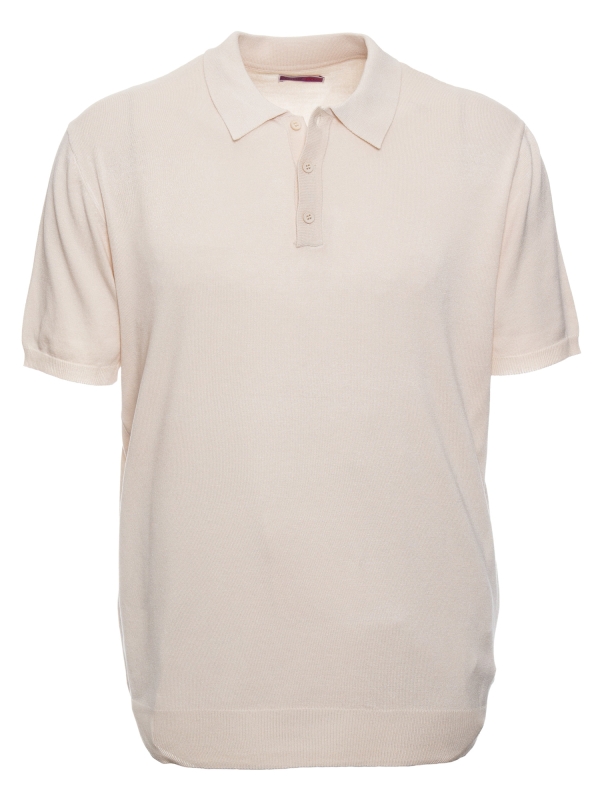 Elegant and understated, this cream knit polo features a regular fit, classic collar, and three-button placket. Its clean design makes it an easy-to-style piece for a refined yet relaxed everyday look.