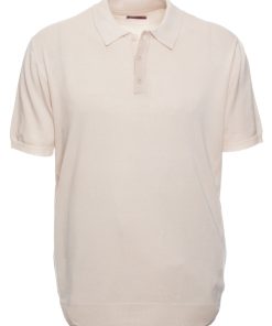 Elegant and understated, this cream knit polo features a regular fit, classic collar, and three-button placket. Its clean design makes it an easy-to-style piece for a refined yet relaxed everyday look.