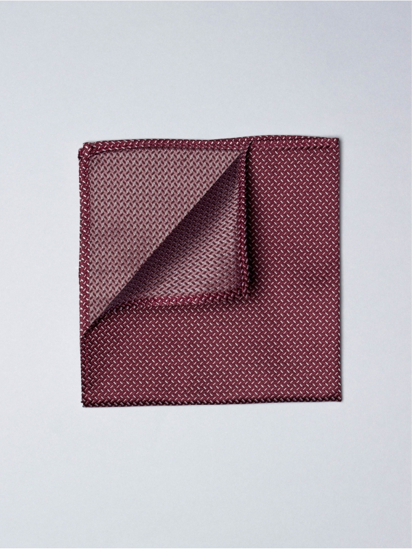 Play with the colors, thanks to this burgundy silk pocket. Its micro white and pink patterns will give uniqueness and sophistication to your dark jackets.