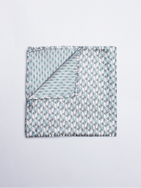 Differentiate yourself with this green pocket square with triangle patterns. To play contrasts, pair with a black jacket.