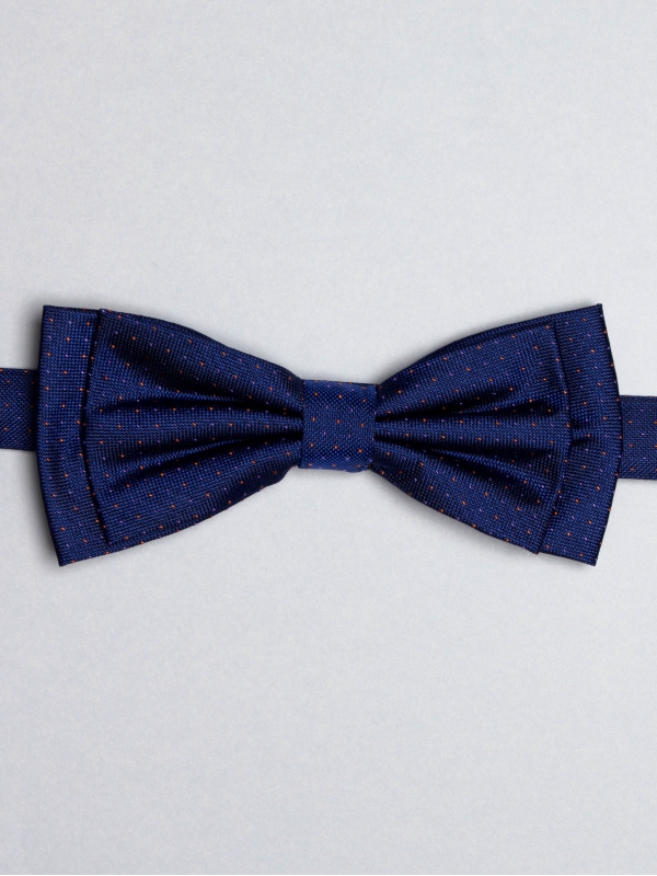 Do not hesitate to wear the orange and violet notes of this blue bow tie with a colorful blazer, for a preppy style. For a more formal look, it goes also with dark suits.