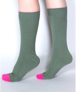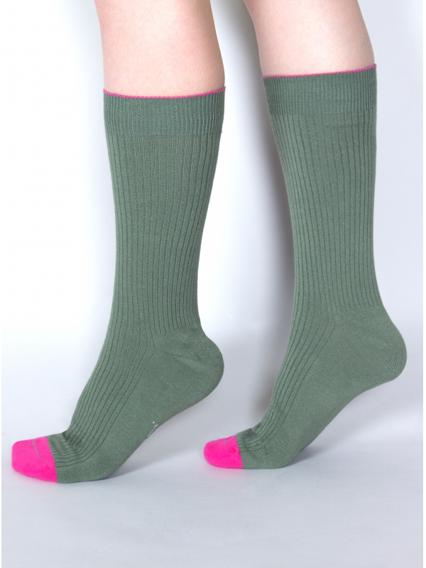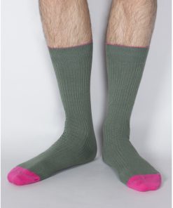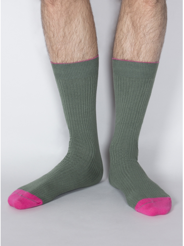 Break up those lonotonous outfits with these solid green socks! The extreme pink and pistachio detailing bring an added layer of originality to this soft pair, which can easily be matched with an assortment of burgundy or gray pants. 80% cotton / 18% polyamide / 2% elastane.