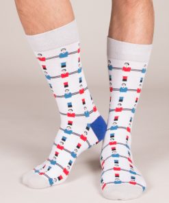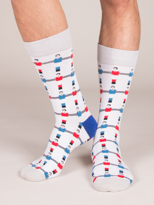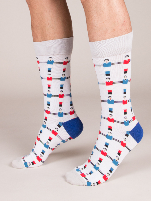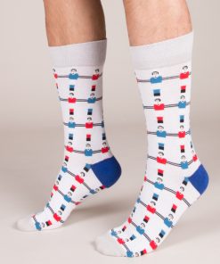 Here is a paire of socks for all the fans of football! With this baby foot patterned socks full of humor and its tricolor shades, they will perfectly match raw jeans and a navy blue blazer to break the classic codes. The ball is in your court!