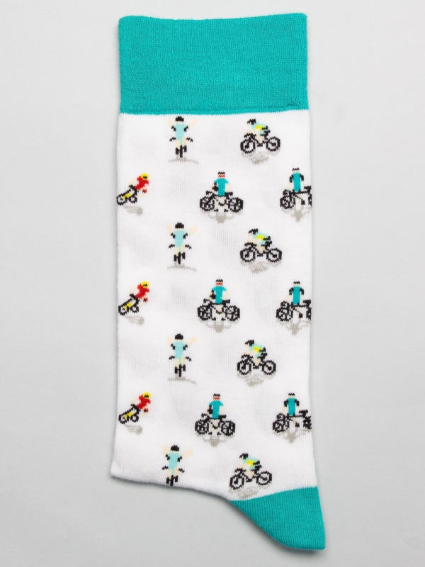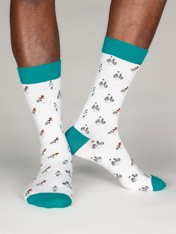 Pedal into style with these socks featuring a bike pattern that captures the spirit of sport. Each pair celebrates the freedom of the open road, turning every stride into a journey of joy and exploration.The model wears a size 42-46.