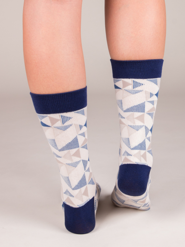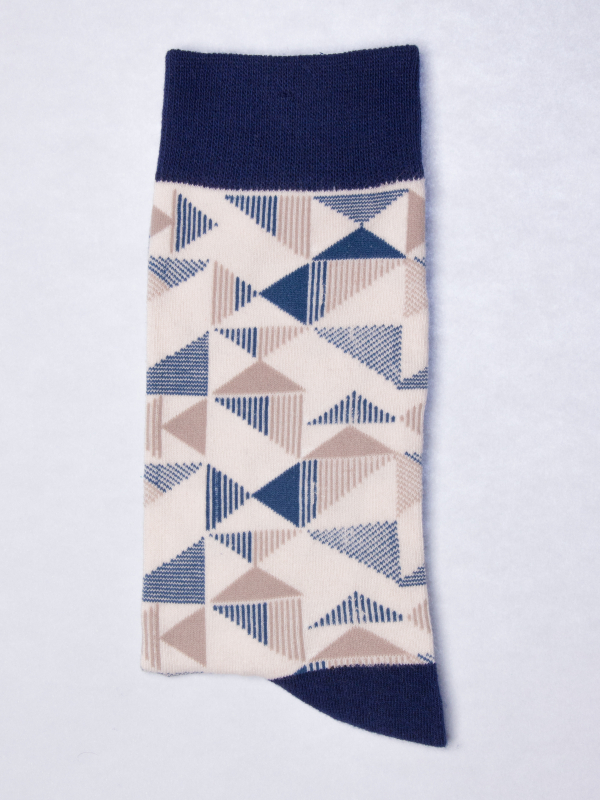 Put on these socks with blue triangle pattern for a look that is both classic and original. Choose a beige chino pants and a navy blue blazer to perfect the outfit and enjoy the comfort.