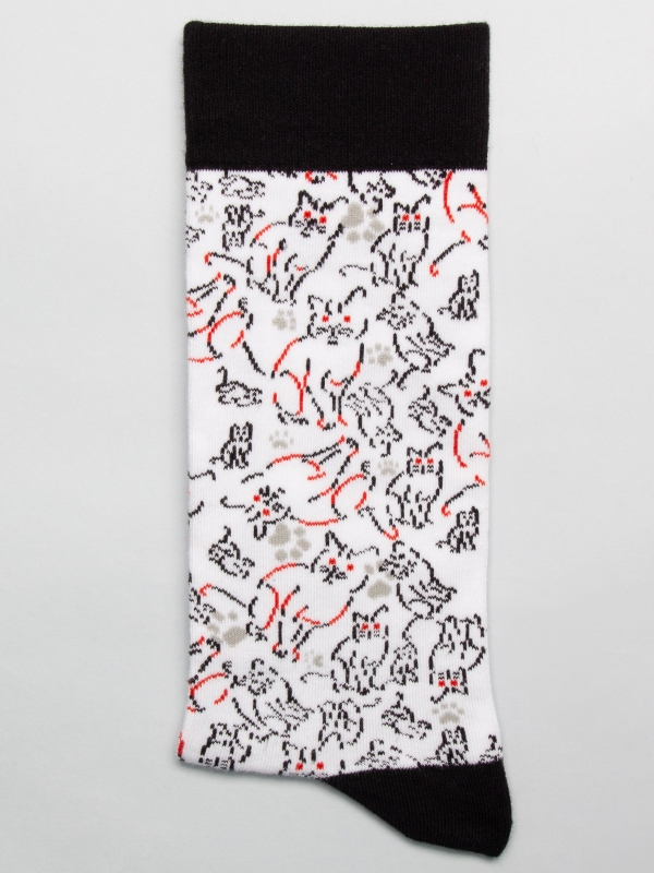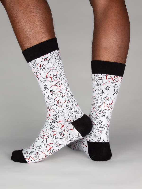 Slip into a world of whimsy with these socks featuring a charming cat pattern. Each pair purrs with playful elegance, making your every step a little more enchanting and full of feline finesse. You’ll also appreciate that it’s made mainly from cotton.The model wears a size 42-46.