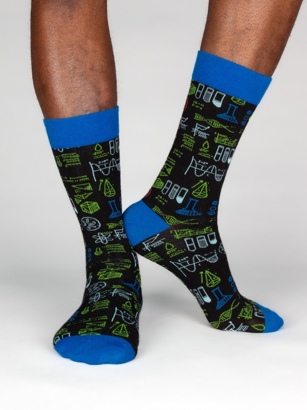 Dive into a world of molecular style with these chemistry-patterned socks. Each pair is a celebration of scientific curiosity, turning every step into a fascinating experiment in comfort and design.The model wears a size 42-46.