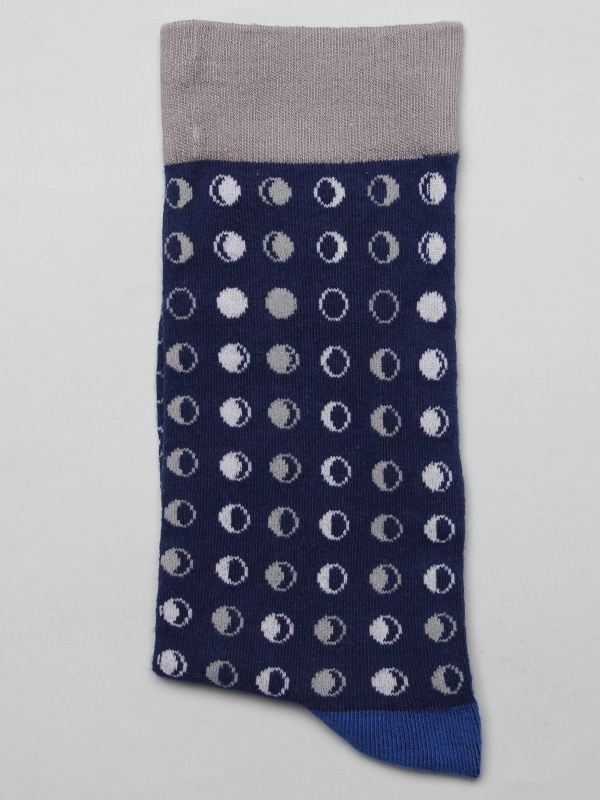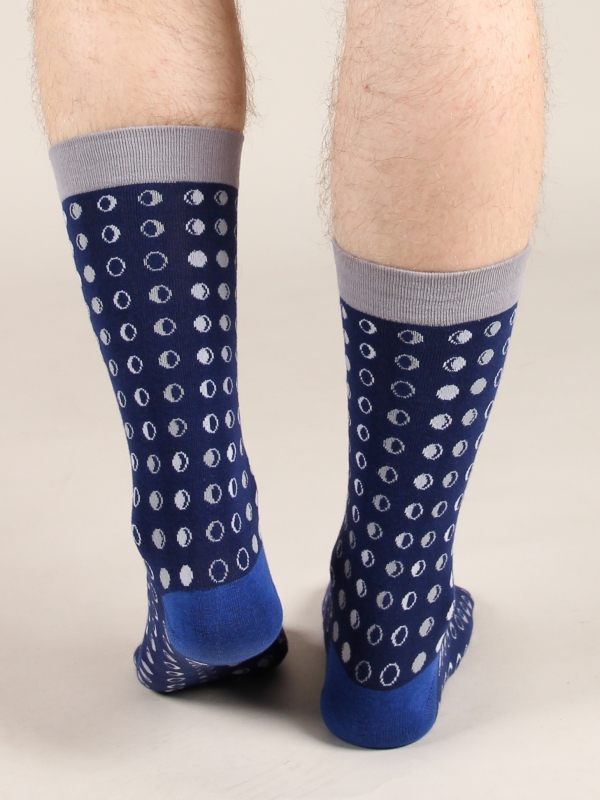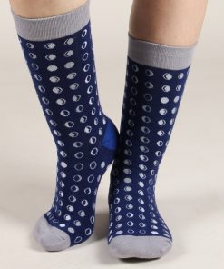 Who has never dreamed of walking onto the moon? Your dream could very well come true thanks to this pair of socks with moon motif – precisely! Its blue background will make you feel weightless without leaving your shoes. Take advantage of its comfort, and slip them discreetly under a navy suit.
