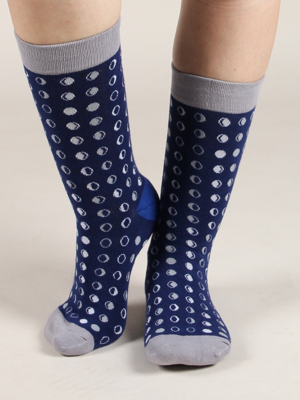 Coton Doux Uniex Socks With Moon Pattern On Blue Background