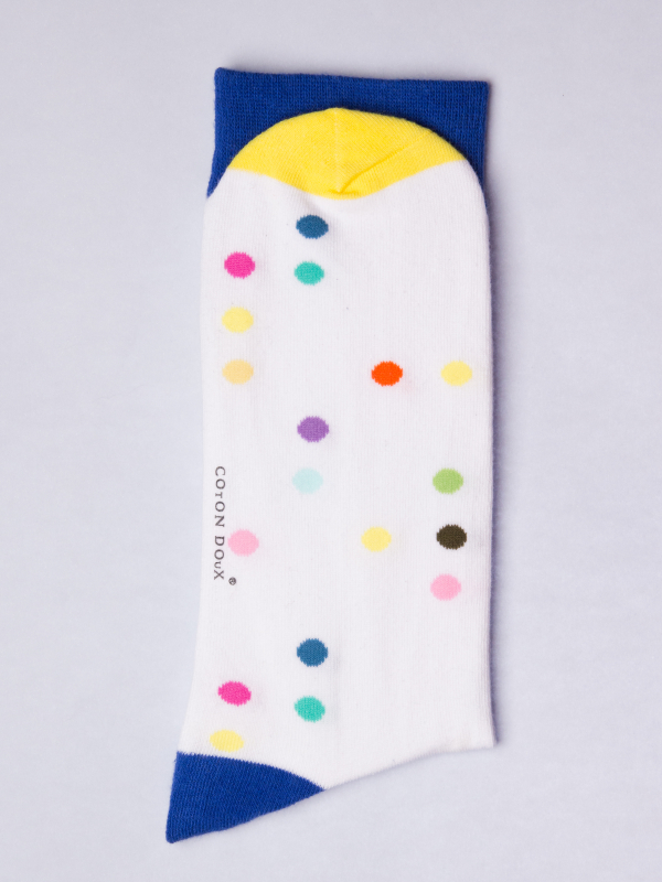 Coton Doux Uniex Socks With Multicolor Dot White Pattern