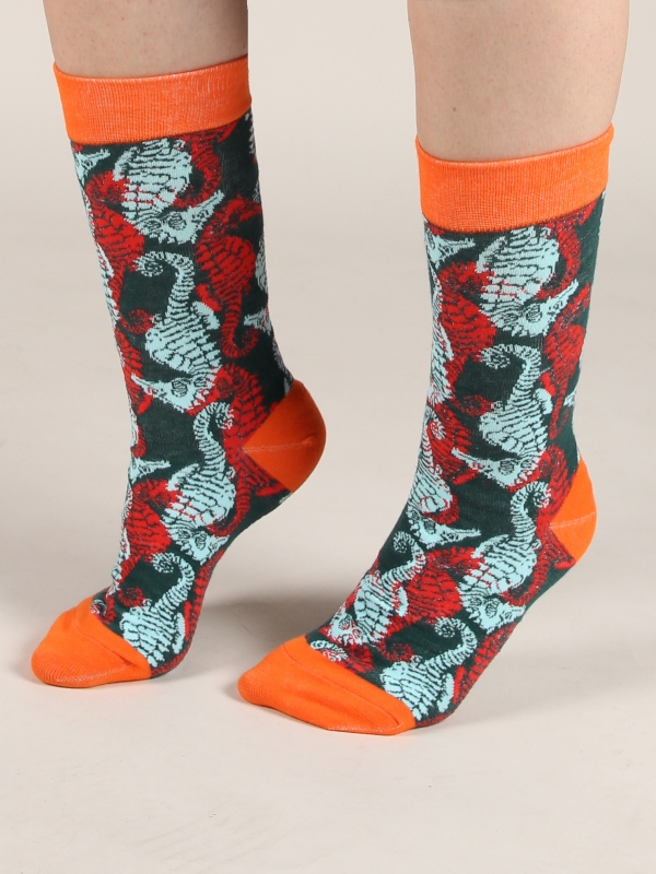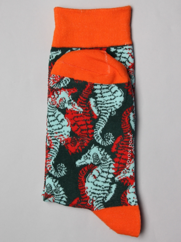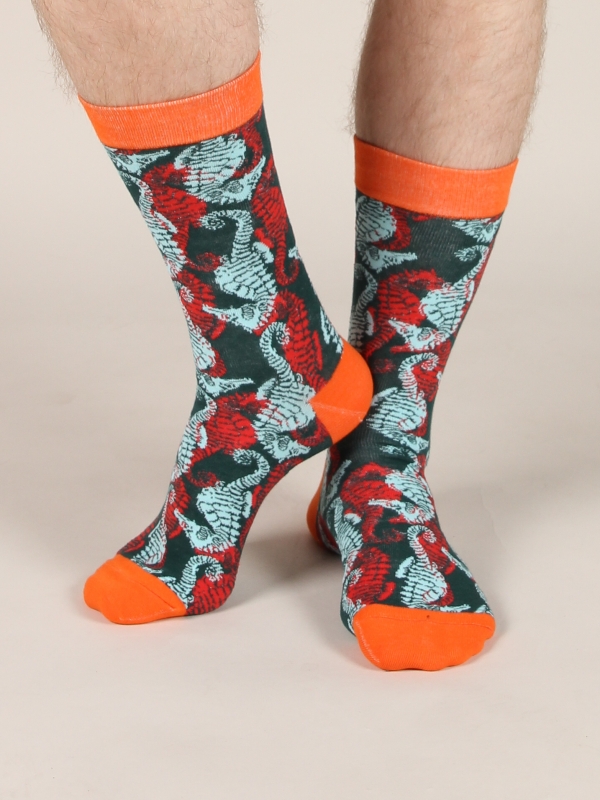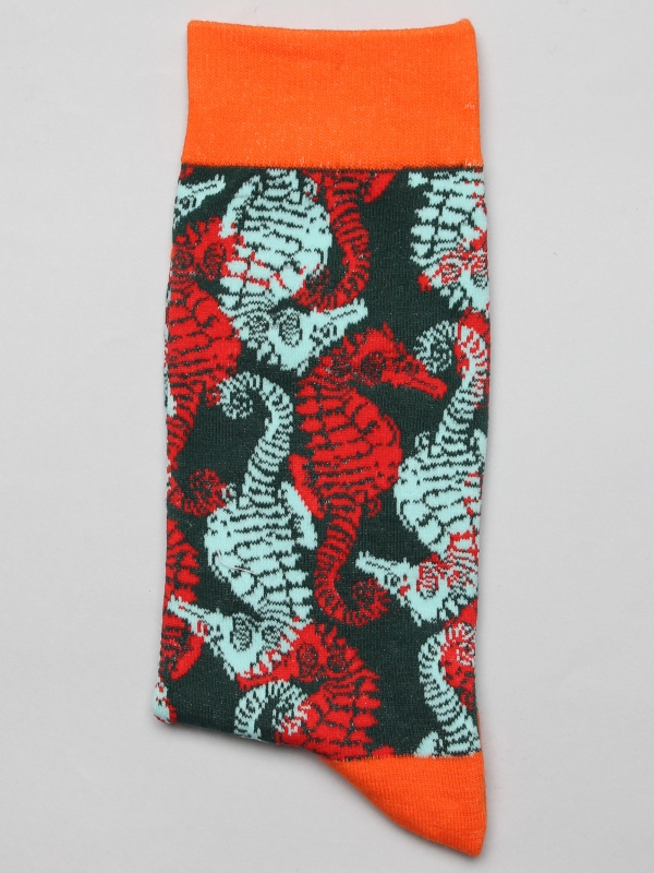 The seahorse is often the symbol of power and strength. With this pair of patterned socks, you will start the day with a feeling of invincibility! You will sail through the multiple hazards of your day, smoothly, as the cotton made up most of this accessory.