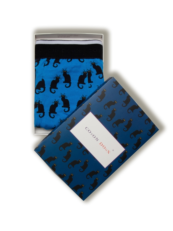 These trunks, adorned with a playful cat print, are made from a soft cotton-elastane blend. With flat lock seams and a black elasticated waistband, they deliver unmatched comfort and a touch of feline flair.