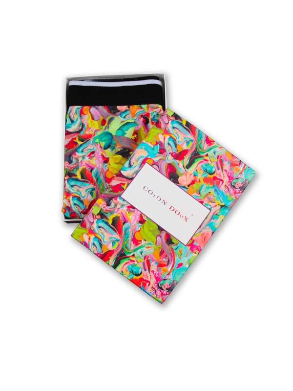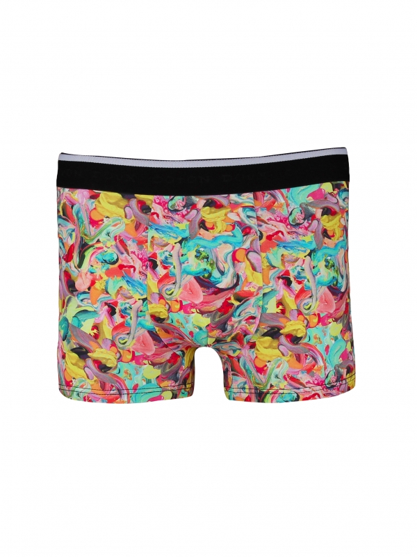Featuring with a black elasticated logo waistband and boasting an all-over splattered effect with all colors in the palette, the trunks with painting print will be THE masterpiece of your wardrobe! More than its originality, you will also appreciate its quality. Made of cotton and a touch of elastane to get comfy, you won’t be able to do without it.