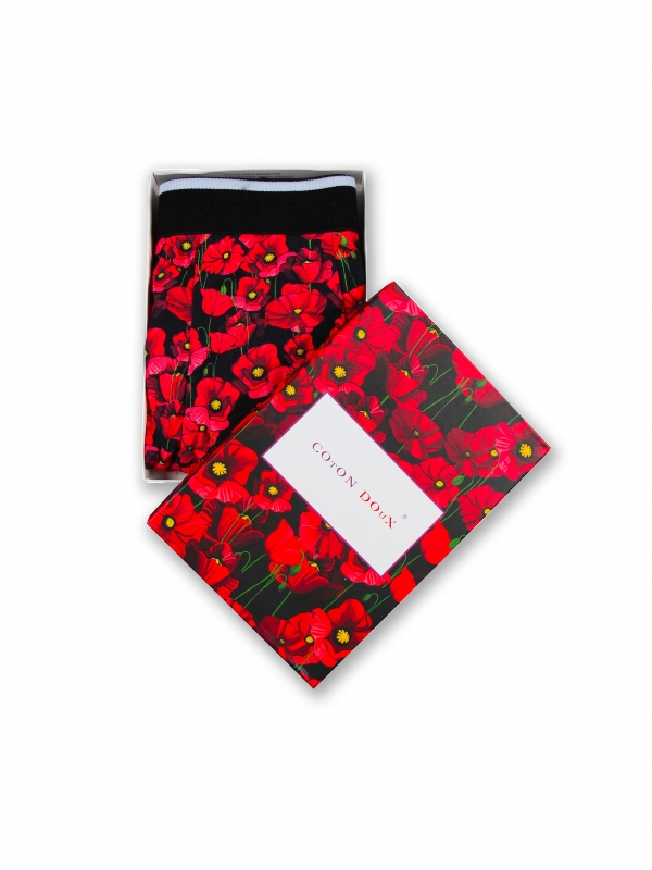 Taking on the radiance of poppy print, our trunks offer a summerlike twist with the beautiful blooms in black and red. Perfect for everyday comfort – our underwear have been crafted from a touch of stretch in addition to cotton for a breathable and comfortable fit. You will appreciate also its soft black waistband.