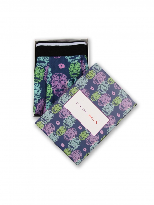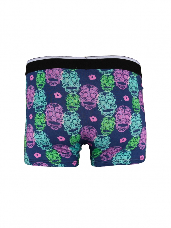 Our mexican skulls design cotton trunks are cut for a comfort fit. They feature the three colors skulls print: white, pink and green and complete with cute tiny pink flowers, a black elasticated logo waistband for good support, a cotton-elastane composition. No need to lose your head, this trunks are yours as soon as you click “Add to cart”.