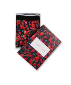 These trunks with wild berries print are designed for a relaxed fit to spend a sweet day. More than its originality you will appreciate also its comfort and support. Displaying an elasticated logo waistband, trunks are made of cotton and a touch of elastane for stretch fit. For once, don’t be afraid to get stain! These berries will not bleed.